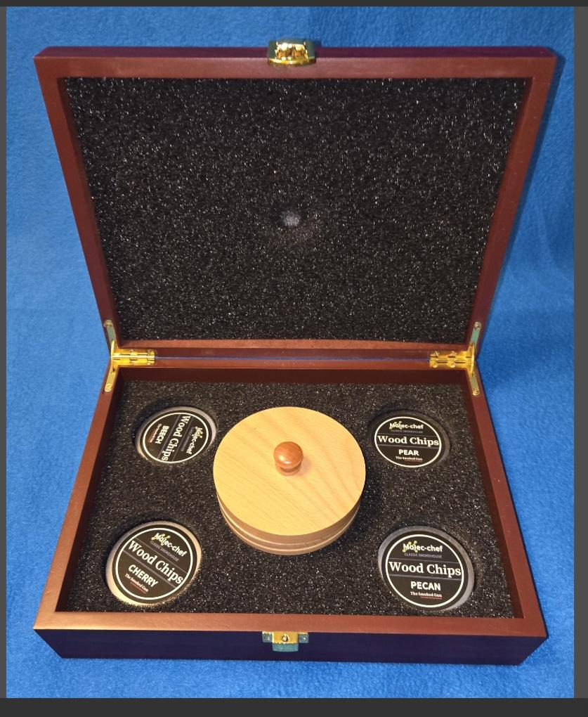 This is for a Cocktail Smoker Gift Set in a Space Theme. It comes with The Smoker, Wood chips in a rosewood display box. This makes a great gift! Please check out our other listings! www.ltajcustoms.com