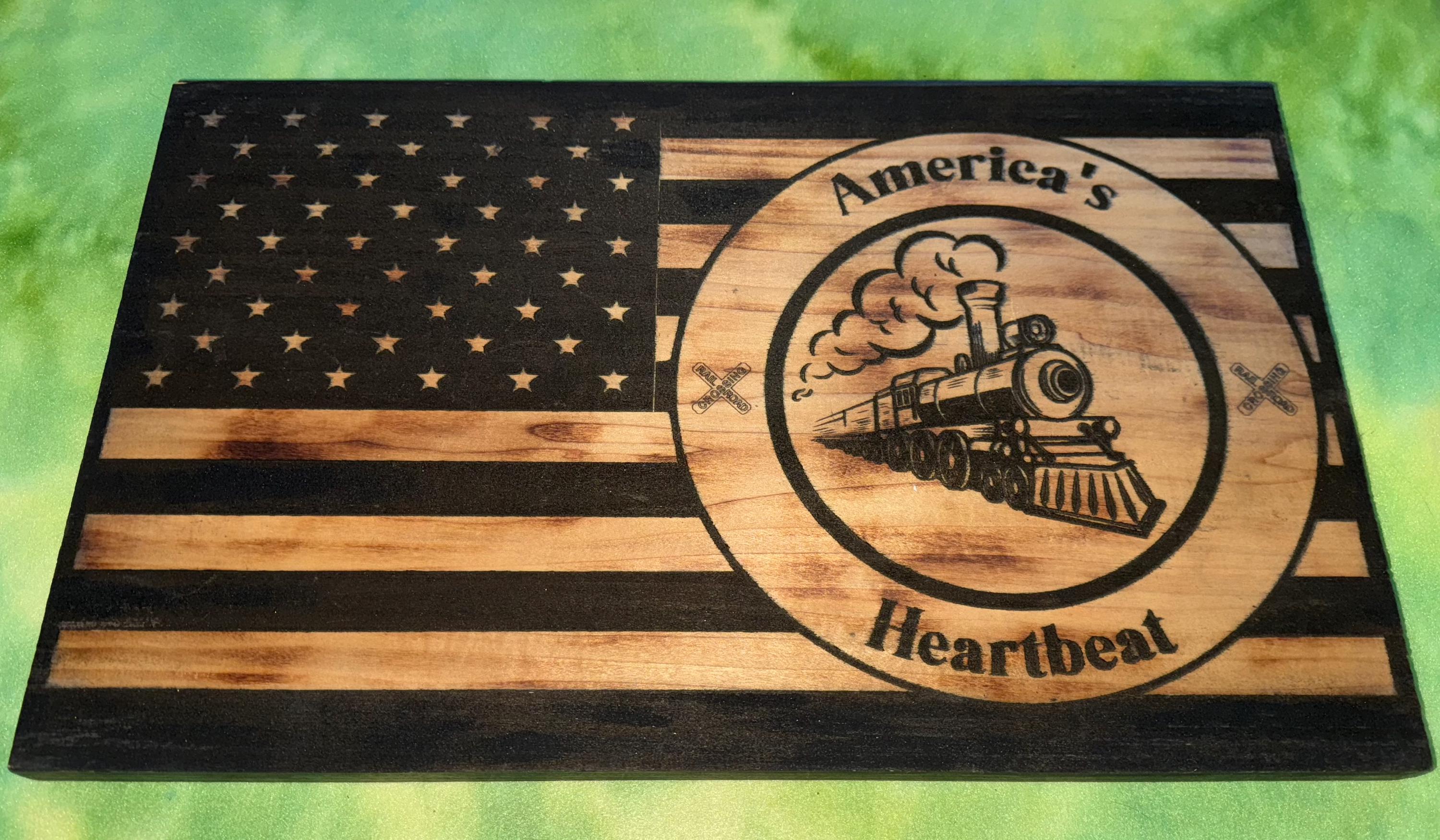 This beautiful flag is done in a Train Theme and is made on pine wood. It is 11" x 21". It will last a lifetime and makes a wonderful gift! Please check out our other listings! If you do not see one you like that is not a problem. Contact us via our website and we will custom make one for you! www.ltajcustoms.com